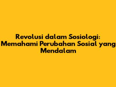 Revolusi dalam sosiologi adalah proses perubahan sosial yang berlangsung secara cepat, radikal, dan mengubah tatanan masyarakat secara fundamental. Ini berbeda dengan evolusi sosial yang berlangsung secara bertahap. Revolusi seringkali melibatkan perubahan dalam sistem politik, ekonomi, sosial, dan budaya. Perubahan ini bisa terjadi karena berbagai faktor, seperti ketidakpuasan masyarakat terhadap sistem yang ada, krisis ekonomi, perubahan ideologi, atau bahkan teknologi baru. Perubahan revolusioner biasanya memiliki dampak yang luas dan dapat dirasakan dalam jangka waktu yang relatif singkat.