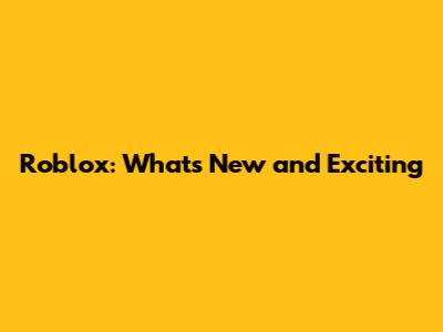 Roblox: What's New And Exciting