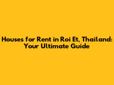 Roi Et Thailand: Find Your Perfect Rental House