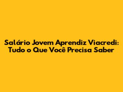 E aí, galera! Se você tá buscando uma oportunidade incrível para começar no mercado de trabalho, a chance de ser um Jovem Aprendiz na Viacredi pode ser o seu passaporte. Mas, vamos direto ao ponto: salário jovem aprendiz Viacredi é uma das perguntas que mais rolam, né? Fica tranquilo que a gente vai desmistificar tudo isso pra você.
