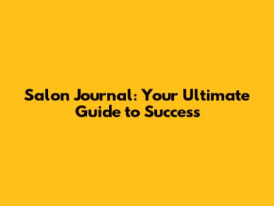 Salon Journal: Your Ultimate Guide To Success