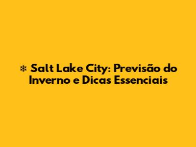 ❄️ Salt Lake City: Previsão Do Inverno E Dicas Essenciais