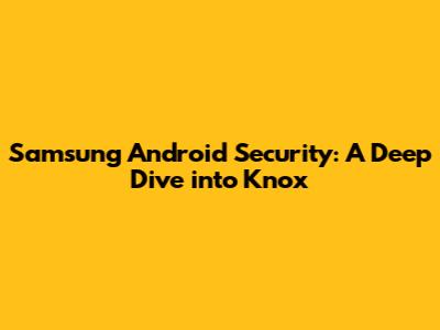 Samsung Android Security: A Deep Dive Into Knox