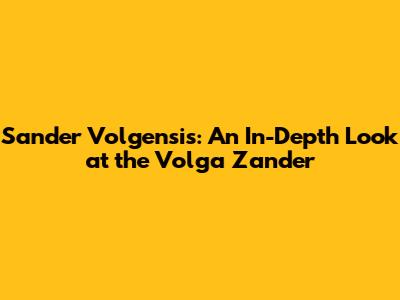 Sander Volgensis: An In-Depth Look At The Volga Zander