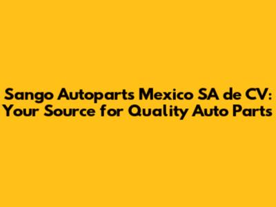 Sango Autoparts Mexico: Your Source For Quality Auto Parts