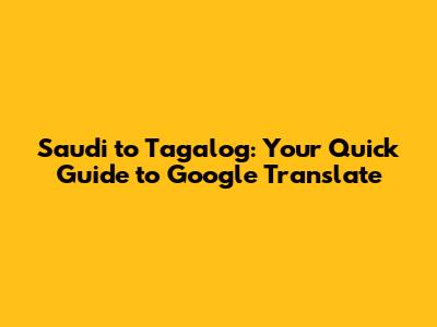 Saudi To Tagalog: Fast Google Translations