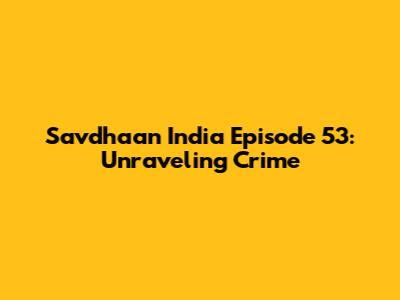 The Plot Thickens: A Closer Look at Savdhaan India Episode 53