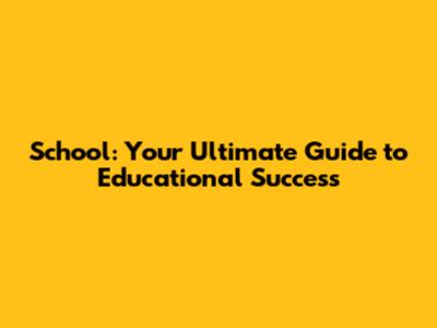 School: Your Ultimate Guide To Educational Success