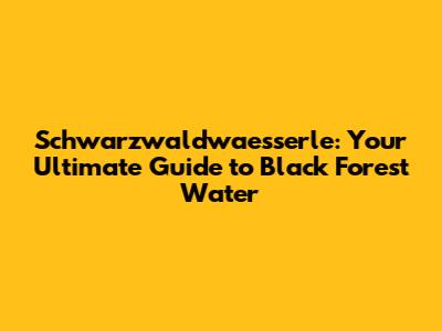 Schwarzwaldwaesserle: Your Guide To Black Forest Water
