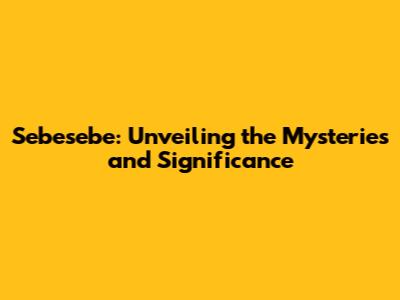 Sebesebe: Unveiling The Mysteries And Significance