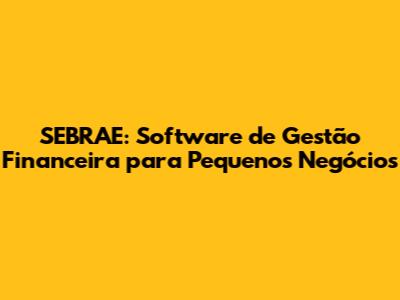 SEBRAE: Software De Gestão Financeira Para Pequenos Negócios