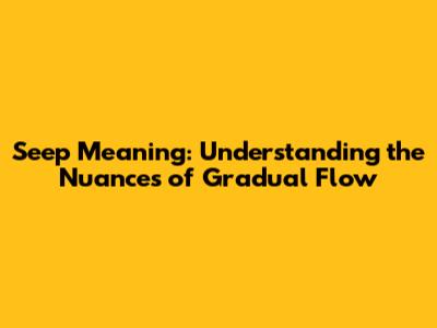 Seep Meaning: Understanding The Nuances Of Gradual Flow