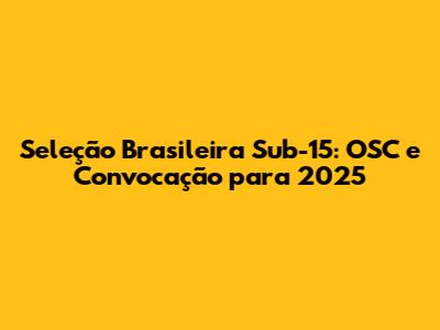 Seleção Brasileira Sub-15: OSC E Convocação Para 2025