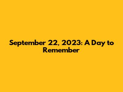 Hey guys! Let's rewind the clock and dive into a specific date: September 22, 2023. This was a day filled with events, from global happenings to personal milestones. I'll break down the day's key moments, painting a picture of what made this particular day stand out. It's always fascinating to see how a single date can hold so much information, right? So, buckle up as we journey through the happenings of September 22nd, 2023, exploring everything from major news stories to noteworthy cultural events and everything in between. It's like a time capsule, offering us a peek into the past and allowing us to remember the vibe of that particular day. Let's dig in and find out what made this day so unique. This deep dive will uncover the significant events that shaped the day, providing an engaging look into the past. We're going to use a blend of well-researched facts and easy-to-understand explanations to make it a smooth and enjoyable read. Get ready to have your memory refreshed and your knowledge expanded! It's going to be a fun trip down memory lane, and who knows, you might even learn something new about the world around you.