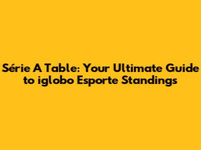 Série A Table: Your Guide To The Latest Iglobo Esporte Standings