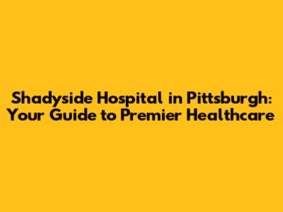 Hey guys! Let's dive into everything you need to know about Shadyside Hospital in Pittsburgh. Whether you're a local, planning a visit, or just curious about top-notch healthcare facilities, this guide is for you. We'll cover its history, services, community impact, and why it stands out as a leading hospital in the region. So, buckle up and let's get started!
