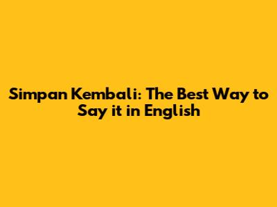 Simpan Kembali: The Best Way To Say It In English