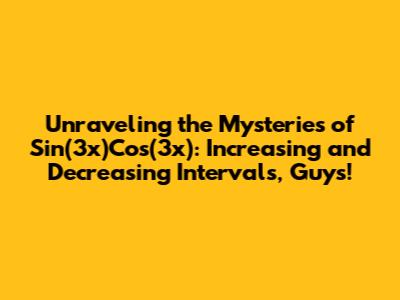 Hey math enthusiasts! Ever stumbled upon a function like sin(3x)cos(3x) and wondered, "What on earth is this thing doing? Is it going up? Is it going down?" Well, buckle up, because today we're diving deep into the fascinating world of trigonometric functions and specifically dissecting the increasing and decreasing intervals of sin(3x)cos(3x). Trust me, it's not as scary as it sounds, and once you get the hang of it, you'll be analyzing these kinds of functions like a pro. We're going to break it all down, step by step, so even if calculus has been giving you a bit of a headache, you'll come away with a clear understanding. So grab your favorite beverage, get comfy, and let's get this mathematical party started!