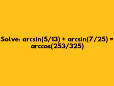 Solve: Arcsin(5/13) + Arcsin(7/25) = Arccos(253/325)
