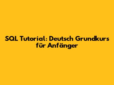 SQL Tutorial: Deutsch Grundkurs Für Anfänger
