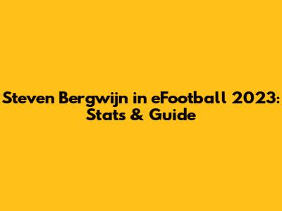 Steven Bergwijn In EFootball 2023: Stats & Guide
