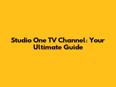 Studio One TV Channel: Your Ultimate Guide