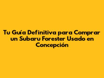 ¿Dónde Encontrar tu Subaru Forester Usado Ideal en Concepción?