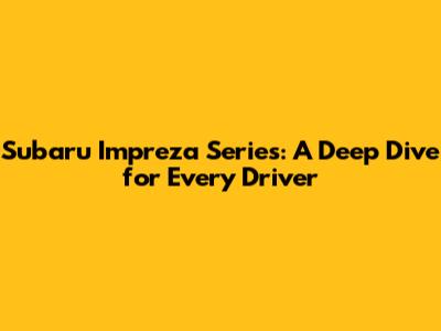 Hey car enthusiasts! Today, we're going to take a super close look at a legendary nameplate in the automotive world: the Subaru Impreza series. This car has been a go-to for so many people, whether they're looking for a reliable daily driver, a sporty weekend warrior, or even something to tackle a bit of adventure. We're talking about a car that's built a reputation for its all-wheel-drive capabilities, boxer engines, and a certain rugged charm that many other sedans and hatchbacks just can't match. So, buckle up, guys, because we're about to explore everything that makes the Impreza so special, from its historical roots to its latest iterations. We'll break down what each generation brought to the table, discuss the different trims and models that have been available, and help you understand why the Subaru Impreza continues to be a top contender in its class. Whether you're a seasoned Subaru fan or just Subaru-curious, there's something here for you. We'll dive into the performance aspects, the interior comfort, the safety features, and of course, the iconic styling that defines the Impreza. Get ready to learn all about the series that has consistently delivered value, performance, and that unique Subaru driving experience we all know and love. It's going to be a fun ride!