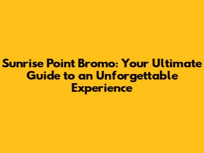 Sunrise Point Bromo: Your Ultimate Guide
