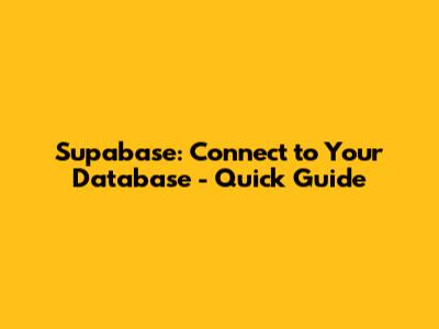 Supabase: Connect To Your Database - Quick Guide