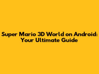 Super Mario 3D World On Android: Your Ultimate Guide