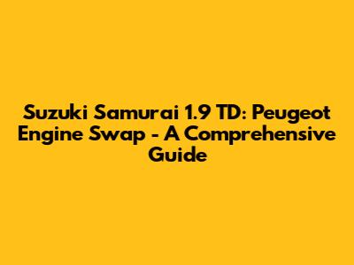 Hey there, gearheads! Ever dreamed of breathing new life into your Suzuki Samurai? Well, if you're like me, you've probably considered some seriously cool engine swap options. Today, we're diving deep into one of the most popular and rewarding upgrades: the Suzuki Samurai 1.9 TD Peugeot engine swap. This conversion is a fantastic way to boost your Samurai's performance, fuel efficiency, and overall driving experience. Get ready, because we're about to explore everything you need to know, from why this swap rocks to the nitty-gritty details of making it happen.