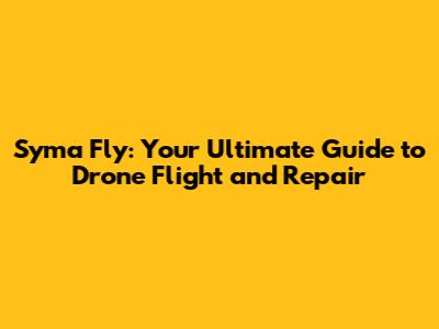 Syma Fly: Mastering Drone Flight And Repair