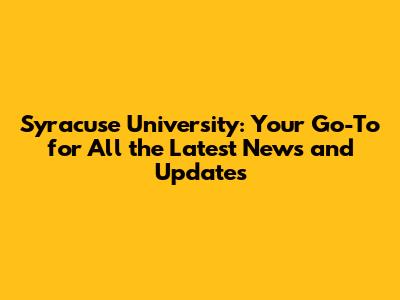 Syracuse University: Latest News & Updates