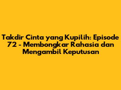 Takdir Cinta yang Kupilih, guys! Episode 72 ini benar-benar bikin gregetan! Kita akan menyelami lebih dalam lagi ke dalam drama percintaan yang rumit, intrik keluarga yang tak berujung, dan pilihan hidup yang harus diambil oleh para tokoh kesayangan kita. Persiapkan diri kalian untuk rollercoaster emosi karena episode kali ini penuh dengan kejutan, pengungkapan rahasia, dan momen-momen yang akan mengubah segalanya. Jangan sampai ketinggalan, ya!