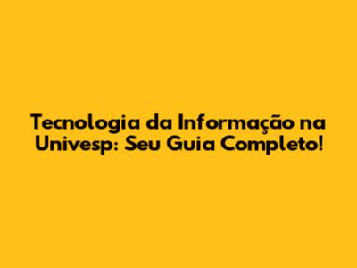 Tecnologia Da Informação Na Univesp: Seu Guia Completo!