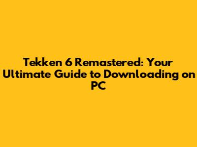 Hey guys! Are you ready to rumble? If you're itching to get back into the King of Iron Fist Tournament, you're probably wondering about Tekken 6 Remastered and how to get it on your PC. Let's dive into everything you need to know about downloading and playing this classic fighting game on your computer.