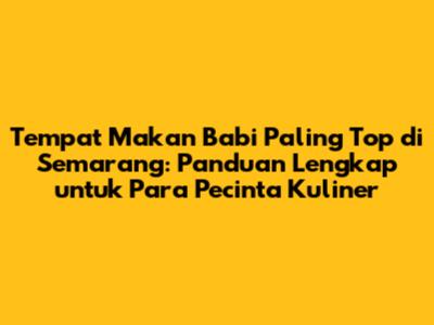 Semarang memang surga bagi para pecinta kuliner babi. Dengan banyaknya pilihan tempat makan yang enak dan berkualitas, kalian pasti akan menemukan tempat favorit kalian. Jangan lupa untuk selalu mencoba hal-hal baru dan menjelajahi berbagai macam rasa. Siapa tahu, kalian bisa menemukan hidangan favorit baru yang akan membuat pengalaman kuliner kalian semakin seru. Selamat mencoba dan semoga sukses dengan petualangan kuliner kalian di Semarang!