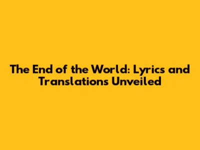 The End Of The World: Lyrics And Translations Unveiled