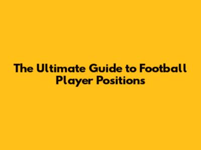 The Ultimate Guide To Football Player Positions