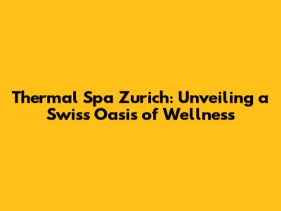 Thermal Spa Zurich: Unveiling A Swiss Oasis Of Wellness