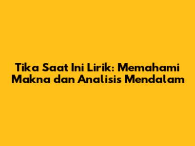 Tika Saat Ini Lirik: Memahami Makna Dan Analisis Mendalam