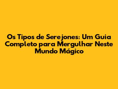Os Tipos de Serejones: Um Guia Completo para Mergulhar Neste Mundo Mágico
