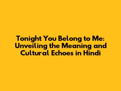 Tonight You Belong To Me: Meaning & Cultural Impact In Hindi