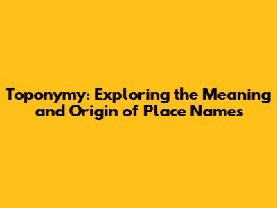 Toponymy: Exploring The Meaning And Origin Of Place Names
