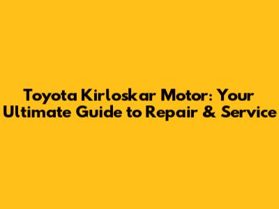 Toyota Kirloskar Motor: Your Guide To Repair & Service