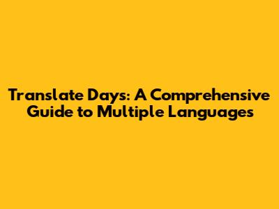 Translate Days: A Comprehensive Guide To Multiple Languages