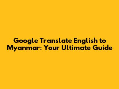 Hey guys! Need to translate something from English to Myanmar (Burmese)? You're in the right place! In this guide, we're diving deep into how to use Google Translate for English to Myanmar translations. We'll cover everything from basic usage to some cool tips and tricks to get the most accurate results. Let's get started!