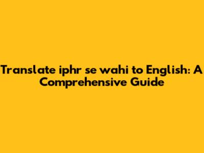 Translate 'iphr Se Wahi' To English: A Complete Guide