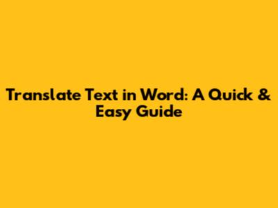 Translate Text In Word: A Quick & Easy Guide